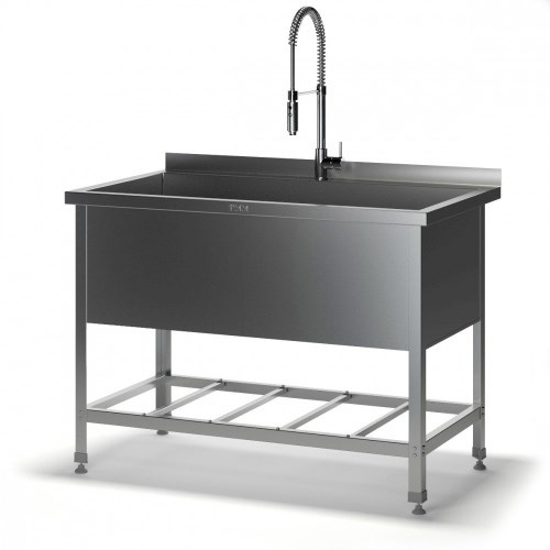 Ванна котломоечная ВМС-Н 1 секция (1000х600х870 глубина - 300 мм), с бортом, отверстие под смеситель по центру
