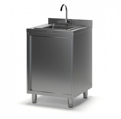Ванна моечная ТМ-2/700 с тумбой (700х700х870), мойка цельн. накладная 400х500х140, отверстие под смеситель сбоку