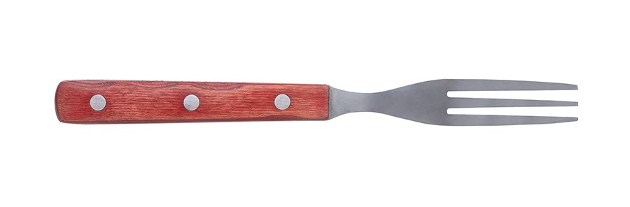 Длина : 198 мм\; Материал вилки : нержавеющая сталь 3CR16\; Материал ручки : дерево\; Цвет ручки : красный\;