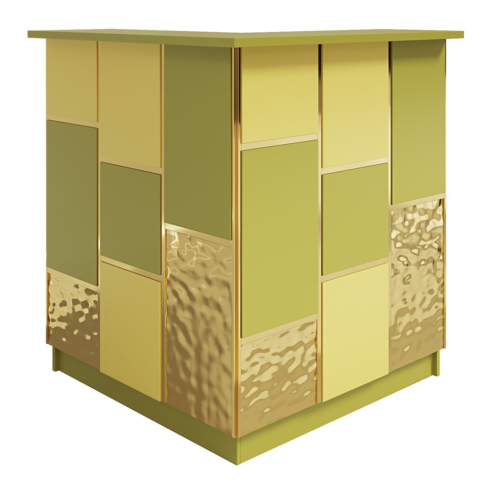 Габариты (ШхГхВ) : 1052х1052х1190 мм \; Материал корпуса : ЛДСП 16 мм., кромка ПВХ 2 и 0,4 мм \; Материал фасада : ЛДСП 16 мм., кромка ПВХ, сварной профиль 20х20мм, порошковая покраска; нержавейка 1 мм., нитрид титана. \; Столешница рабочая и гостевая : ЛДСП 25 мм., кромка ПВХ 2 мм\; Подсветка : LED (под столешницей - дополнительная опция)\;